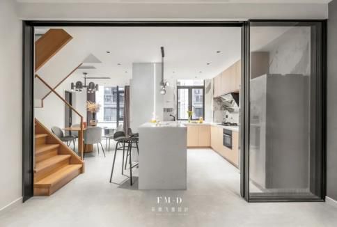 由于常規(guī)推拉門總是會遮住半個門洞,如果想進一步打開空間,可以選擇帶掛軌和地軌的可折疊推拉門: