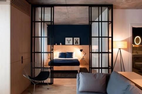 如果你的臥室是用玻璃隔斷隔開的,那么臥室的門就直接跟隨著隔斷: