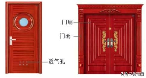 一套屋室木門含蓋門扇、門套、五金配件。此中門扇又稱門頁,含蓋門芯板、門挺、門橫、門蕊板;