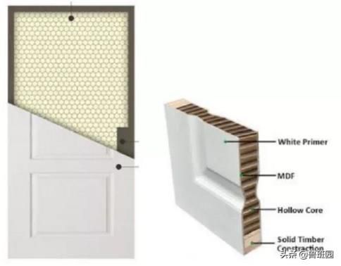將木柴釘成門骨架邊框,內填蜂窩紙,接著在骨架的兩面用膠合板、中纖維板貼三聚氰胺裝潢紙、薄木皮等,外表采取油漆進行裝潢。