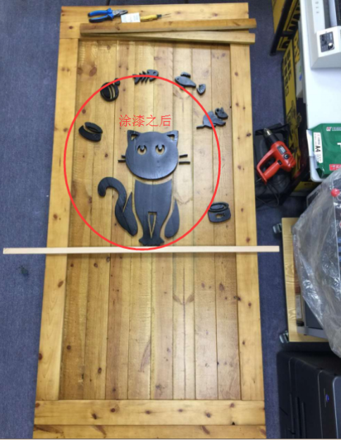 這類粘貼在門上的小飾品,已然被噴漆涂成了彩色,接著再放在上面。
