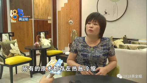 杭州璟望府全屋訂制家居店 蘇老板:“你說廠家有沒有做好,的確是有兩個沒有做好,裂縫是有的,我看見了,木頭是天然的物品,是一個活的物品,一切的原木都存在熱脹冷縮,造成的開裂的狀況,一切廠家一切木頭都存在這個狀況,腐臭呢那時咱們?nèi)タ吹臅r候,他沒有把背后撬開,咱們看見的是一個彩色的節(jié)疤,爛還是不爛這個能夠去探測的,木頭原本的節(jié)疤,一切的木頭全是有節(jié)疤的。”