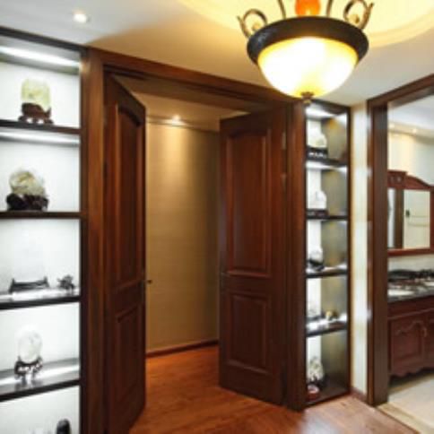 實木復(fù)合門:門芯和內(nèi)部構(gòu)造是由其余木料或密度板制成,唯獨外表是低檔木料并噴涂油漆。通常為三層復(fù)合構(gòu)造:門中心骨架(基材)為集成材(通常為松木或杉木);門芯骨架為實木網(wǎng)格或密度板網(wǎng)格,雙方貼中密度板;外表貼低檔實木木皮(如黑胡桃、紅櫻桃、花梨、柚木、沙比利等)。門的外表通常用的是聚酯漆。