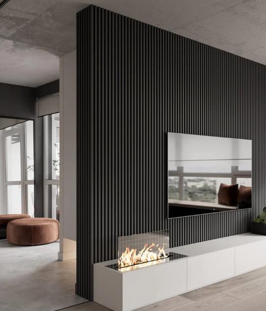 如果您想讓客廳保持黑暗和簡約,同時仍然融入一些紋理,那么電視后面的黑色木板條墻可能是最好的選擇。實現(xiàn)這種外觀的最佳方法是給自己買一些 黑色木板條墻板。在那之后,你只需要一個里面有壁爐的電視柜。當您發(fā)現(xiàn)時,請告訴我們!