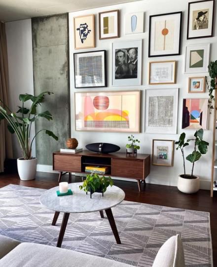 它本身不是口音墻,但至少值得一提。裱框藝術印刷品,在電視周圍創(chuàng)建了這個畫廊墻,這基本上與藝術沒有區(qū)別。絕對不像我們看過的其他款式那樣簡約,但如果你想要更折衷一點的東西,它仍然很漂亮。