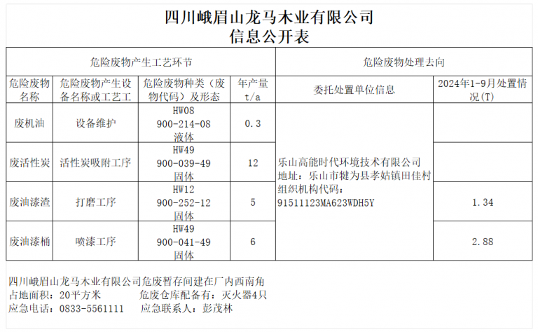 四川峨眉山龍馬木業(yè)有限公司信息公開表